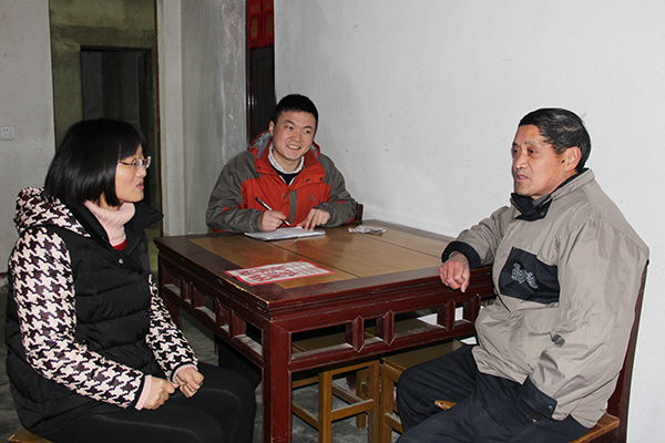 社區工作工作人員與困難職工談心