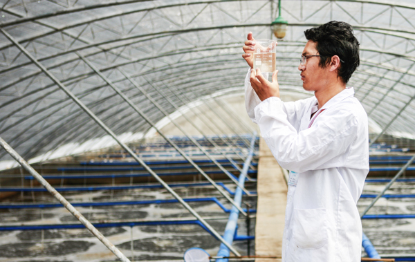 在水產(chǎn)公司水產(chǎn)科技園的魚塘邊,每天都奔忙著一位年輕帥氣的小伙子,他時常一手提著測水儀,一手提著顯微鏡,在魚塘邊研究探索養(yǎng)殖技術(shù),時常帶著漁網(wǎng)巡查魚蝦生長情況,時常推飼料扛飼料參與魚蝦喂養(yǎng)……他就是東辛農(nóng)場優(yōu)秀共產(chǎn)黨員成永洲。