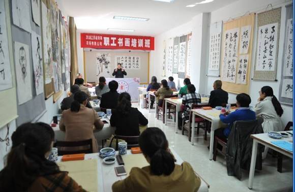 弘揚(yáng)書法藝術(shù),進(jìn)一步引導(dǎo)和提升公司書畫愛好者的創(chuàng)作水平,培養(yǎng)和發(fā)現(xiàn)更多、更優(yōu)的藝術(shù)人才。2018年4月17日,蘆花草堂書法院和淮海農(nóng)場有限公司,在職工文化活動(dòng)中心書畫室共同舉辦第四屆書畫愛好者培訓(xùn)班。中國書法家協(xié)會(huì)會(huì)員、江蘇省書法家協(xié)會(huì)會(huì)員、江蘇省青年書法家協(xié)會(huì)會(huì)員、鹽城市書法家協(xié)會(huì)理事,濱海縣書畫家協(xié)會(huì)副主席左克成老師應(yīng)邀前來授課,公司近20名學(xué)員參加了當(dāng)天的授課和書畫創(chuàng)作。