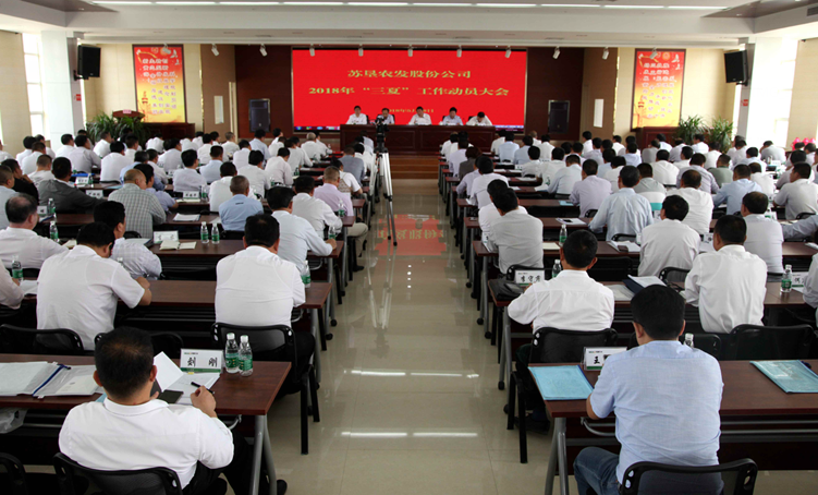 5月28日,蘇墾農發股份公司2018年“三夏”工作動員大會在黃海分公司召開。集團公司總經理、蘇墾農發股份公司董事長胡兆輝主持會議并講話。集團公司黨委委員、蘇墾農發股份公司總裁蘇志富作“三夏”工作動員報告,蘇墾農發股份公司副總裁許峰宣讀“三夏”工作意見。
