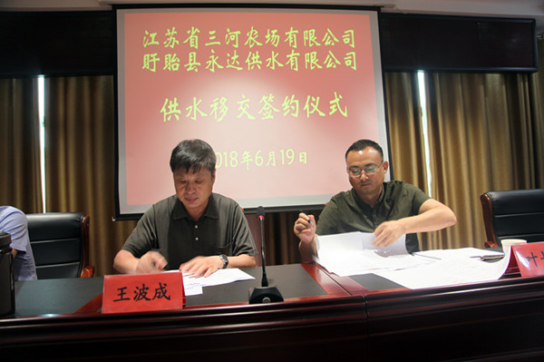 三河農場有限公司與盱眙縣天源永達供水有限公司簽訂供水移交協議
