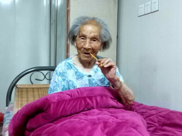 在采訪中我們了解到,張瑞瑞老人從不串門,飲食起居比較規律,腸胃也較好。早上7點吃早餐,中午11點吃午餐,下午6點吃晚飯,每次吃飯都是自己裝自個兒吃,晚飯后散步回來就上床睡覺。