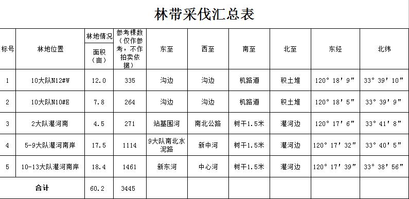 1.擬采伐林帶5條,占地面積60余畝,都是楊樹,采伐樹木3400余株。