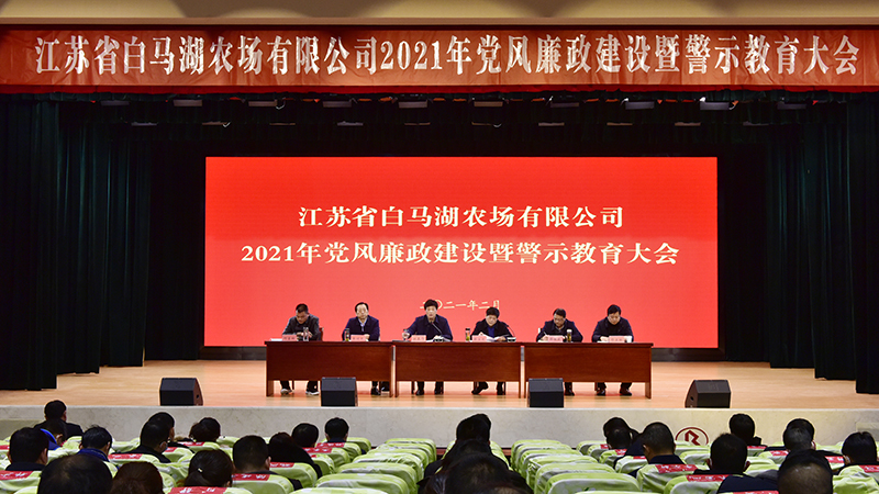 為認真履行全面從嚴治黨主體責任,教育引導廣大黨員干部切實增強“四個意識”,堅定“四個自信”,做到“兩個維護”,自覺提高政治判斷力、政治領悟力、政治執行力,始終保持清正廉潔的政治本色和求真務實的優良作風,以良好的狀態和奮進的姿態投入新年及“十四五”開局起步工作,220,白馬湖農場公司召開了2021黨風廉政建設暨警示教育大會。