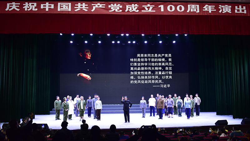 周恩來,這是一個光榮的名字、不朽的名字。周恩來同志是近代以來中華民族的一顆璀璨巨星,是中國共產黨人的一面不朽旗幟。作為淮安市委慶祝中國共產黨成立100周年獻禮作品之一,該劇以習近平總書記提出的不忘初心、堅守信仰,對黨忠誠、維護大局,熱愛人民、勤政為民,自我革命、永遠奮斗,勇于擔當、鞠躬盡瘁,嚴于律己、清正廉潔這六個杰出楷模為主線,擷取了黃河搶險、送侄回鄉、故鄉行、一件珍貴的襯衫、顧全大局、西花廳不滅的燈光、最后的歲月等七個篇章,以藝術的手法還原或再現了周恩來作為中國共產黨人杰出楷模,在為中國人民謀幸福、為中華民族謀復興、為人類進步事業而奮斗的光輝一生中的一些典型情景,再現和展示了周恩來這一偉岸的精神豐碑,塑造和彰顯了一名優秀中國共產黨人的光輝形象,使大家深受感染并深愛感動。紛紛表示要深入學習周恩來對理想信念堅定執著、對黨的事業忠貞不渝、對革命工作高度負責、對人民群眾情懷至深、對自我修養嚴格要求的精神風范,始終做到不忘初心、堅守信仰,牢記手中的權力是黨和人民賦予的,是用來為人民服務的,一身正氣、兩袖清風,敬畏人民、敬畏組織、敬畏法紀,更好地加強自身建設,做一個堂堂正正的共產黨人,用實際行動在新時代新征程上作出各自應有的貢獻。