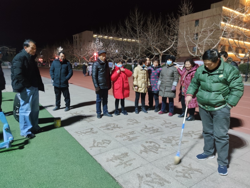 說起寫“地書”的好處,田海燕說,他每天晚上都要在廣場上、公園里或是路道邊練習(xí)一個(gè)多小時(shí),這樣既有利于保健養(yǎng)生,也有利于益智養(yǎng)性,在回憶名人詩詞和偉人風(fēng)采中,展現(xiàn)博大精深的中華文化,也得到了眾多觀看者的稱頌,這可謂是一舉多得。