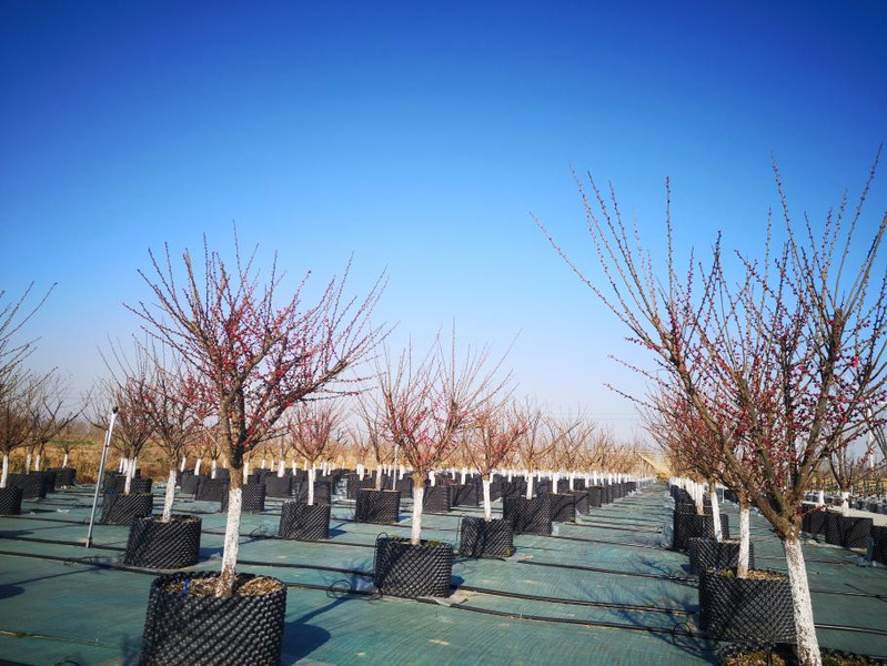 3月上中旬,紅梅始盛開;3月中下旬,絕大多數(shù)苗木吐翠展葉;4月中上旬北美海棠滿樹繁花;4月下旬中華木繡球淡綠花傲然枝頭;5月始11月終,月季園多品種競(jìng)相綻放;6月初7月底,紫薇、木槿、無盡夏綿延整個(gè)夏季;8至9月,基地最富生機(jī),恰如青年風(fēng)華正茂;10月,色葉樹在冷空氣的次次入侵下,漸變成黃、橙、紅色,雞爪槭的色相美翩然而至;11月始,無刺枸骨滿枝紅果累累、經(jīng)冬不凋;12月,常綠樹凌寒孑立,落葉樹像一副副水墨畫,繪就干支線條美;來年的1至2月,冰雪塵封,土地里孕育著下一年的盎然生機(jī)。