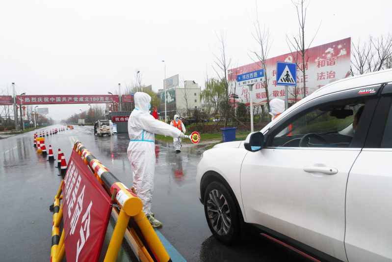“您好,請(qǐng)出示您的行程碼,配合我們測量體溫……”3月25日上午,外面仍然下著大雨,在新洋農(nóng)場疫情防控西卡口點(diǎn)上,頭發(fā)和臉龐早已濕透的防疫人員一邊打著手勢,一邊對(duì)來往人員車輛進(jìn)行引導(dǎo)檢查,整個(gè)程序有條不紊。