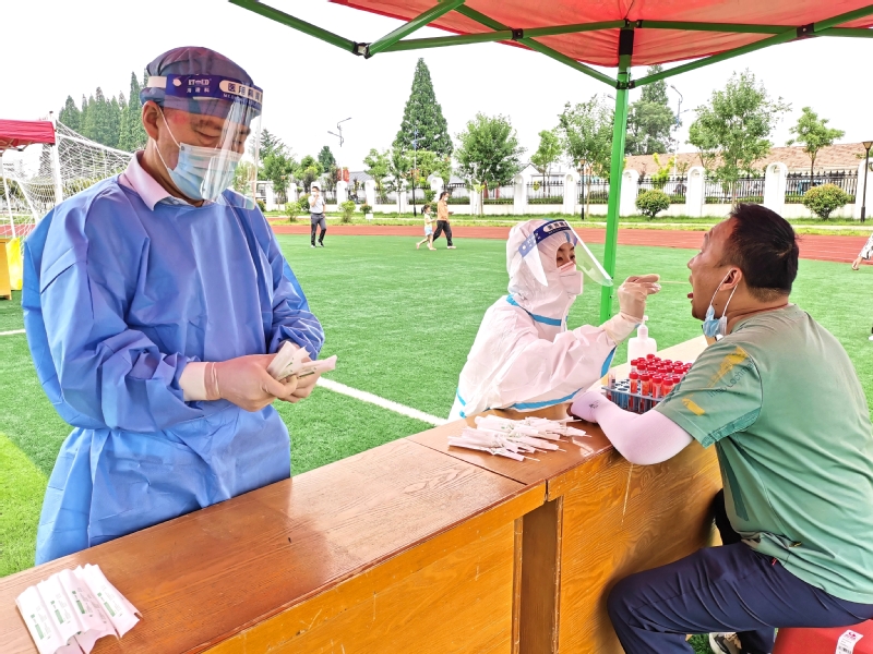把廣場當戰場,在團結協作中恪盡職守。早晨五點半,居民們陸續趕來參加核酸檢測。只見徐加云一身藍色防護服,頭戴隔離面罩,手著橡膠手套,行色匆匆地忙碌在服務一線。指導掃碼、測量體溫、維持兩米線……看到需要引導的居民,他主動上前做起引導員;遇到腿腳不靈便的老人,他連忙攙扶做起志愿者;碰到哪個點位需要人手,他自愿加入做起服務員。溫度迅速攀升,衣服早已干了又濕,他卻毫不在意。拿起消毒噴壺,他仔細地為采樣臺、醫用垃圾箱、人員等候區等處消毒。為縮短居民等待時間,加快采樣速度,他提前為醫護人員準備好核酸檢測咽拭子棉簽?!拔沂怯游瘯ぷ魅藛T,這些都是我應該做的,更何況我還是一名共產黨員,全心全意為人民服務是我的職責。”當被問到辛不辛苦時,他笑著回答道。歷時三小時十分鐘,迎湖廣場檢測點完成樣本采集1080份。核酸檢測高效率的背后,是徐加云的點滴付出,也是一個個共產黨員團結協作的結果。