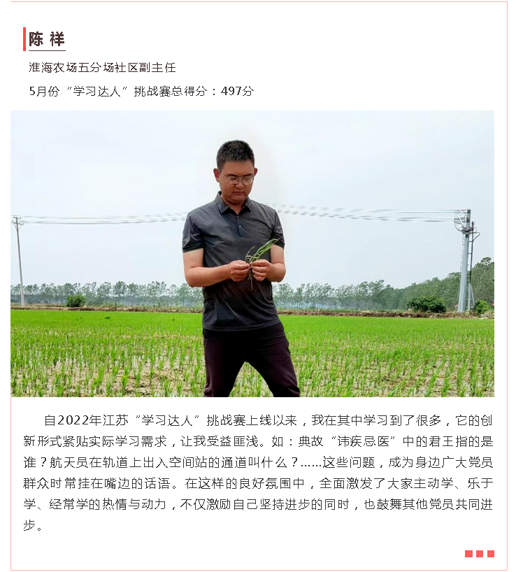 為推動黨史學(xué)習(xí)教育常態(tài)化長效化,進(jìn)一步建好用好“學(xué)習(xí)強(qiáng)國”學(xué)習(xí)平臺,射陽縣根據(jù)省、市、縣的統(tǒng)一部署,5月中旬以來,全縣3.5萬余名“學(xué)習(xí)強(qiáng)國”學(xué)員積極參與“喜迎二十大奮進(jìn)新征程”——2022江蘇“學(xué)習(xí)達(dá)人”挑戰(zhàn)賽,一大批“學(xué)習(xí)達(dá)人”脫穎而出,形成了以賽促學(xué)、比學(xué)趕超的生動局面。