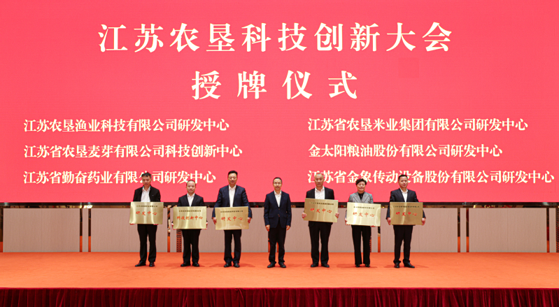 會上,吳本輝、姜建友共同為江蘇農墾漁業科技有限公司和江蘇省農墾產業技術研究院有限責任公司揭牌,吳本輝為蘇墾漁業研發中心、蘇墾米業研發中心、蘇墾麥芽科技創新中心、金太陽糧油研發中心、勤奮藥業研發中心、金象傳動研發中心授牌,姜建友發布江蘇農墾2024-2025年揭榜掛帥項目榜單,生物育種鐘山實驗室、省農科院、南京農業大學、江南大學、揚州大學分別與集團公司所屬企業簽署重點項目合作協議。