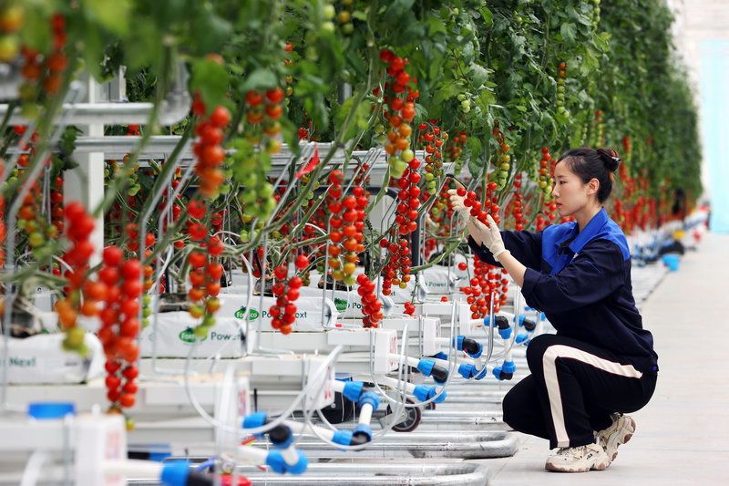 初夏時(shí)節(jié),在位于海淀上莊的首農(nóng)食品集團(tuán)旗下“翠湖智慧農(nóng)業(yè)創(chuàng)新工場”智能連棟溫室內(nèi),一排排高品質(zhì)番茄正奮力汲取著養(yǎng)分向上生長。
