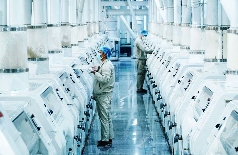 在明亮潔凈的全自動化生產(chǎn)車間里,幾排面粉生產(chǎn)線在中控室監(jiān)控下穩(wěn)定地運(yùn)行著。該車間采用瑞士布勒集團(tuán)現(xiàn)代化制粉工藝和設(shè)備,面粉加工由中控室全程控制,實(shí)現(xiàn)了全自動化生產(chǎn)。在廠區(qū)的谷物營養(yǎng)研發(fā)中心內(nèi),研究人員目不轉(zhuǎn)睛地盯著實(shí)驗(yàn)設(shè)備,觀察各項(xiàng)實(shí)驗(yàn)參數(shù),為生產(chǎn)高品質(zhì)產(chǎn)品把好科研關(guān)。加拿大小麥粉、油餅預(yù)拌粉、麥芯小麥粉、富含膳食纖維的全谷物小麥粉……一批批營養(yǎng)健康的食品,從古船車間走向百姓餐桌。