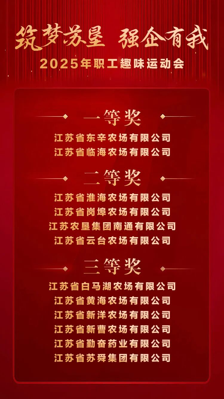 燃動(dòng)金秋,趣享運(yùn)動(dòng)。10月19日,江蘇農(nóng)墾2025年“筑夢(mèng)蘇墾,強(qiáng)企有我”職工趣味運(yùn)動(dòng)會(huì)在寧成功舉辦。集團(tuán)黨委書記、董事長吳本輝,黨委副書記朱浩,副總經(jīng)理劉耀武,黨委委員、副總經(jīng)理王立新,黨委委員、總會(huì)計(jì)師殷紅,黨委委員、副總經(jīng)理劉衛(wèi)華、鄧國新出席活動(dòng)。