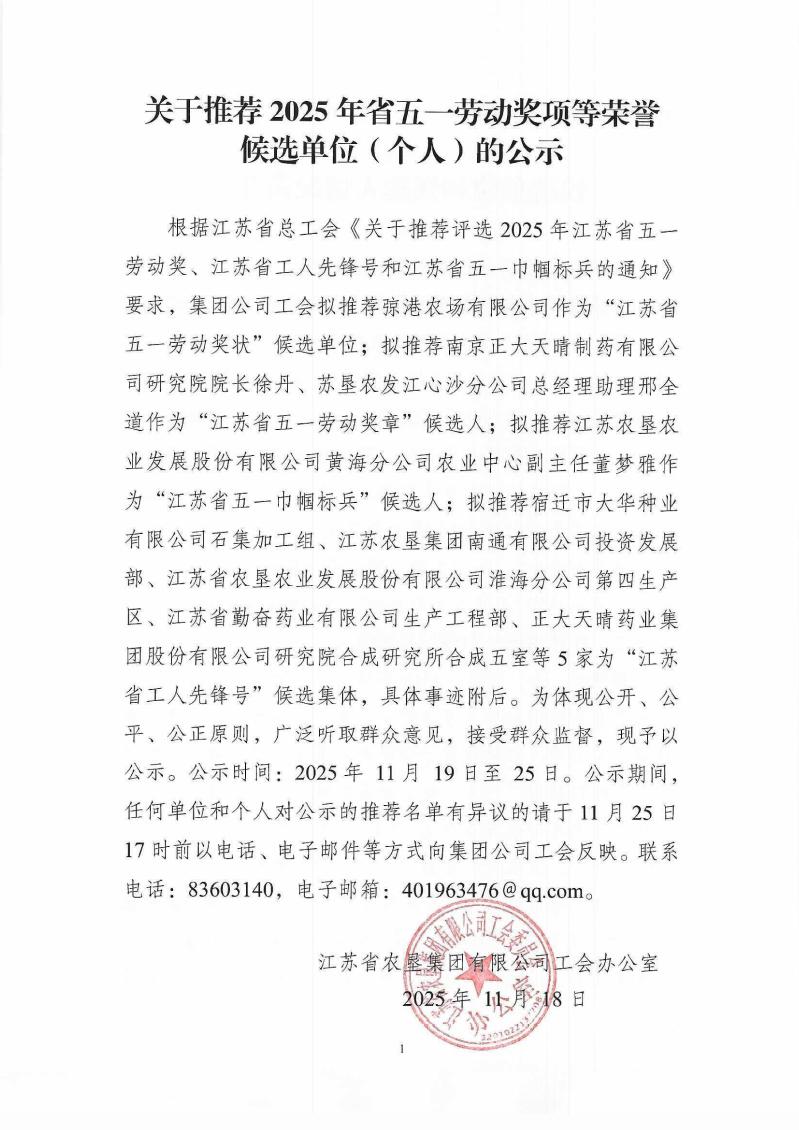 關(guān)于推薦2025年省五一勞動獎項等榮譽候選單位(個人)的公示