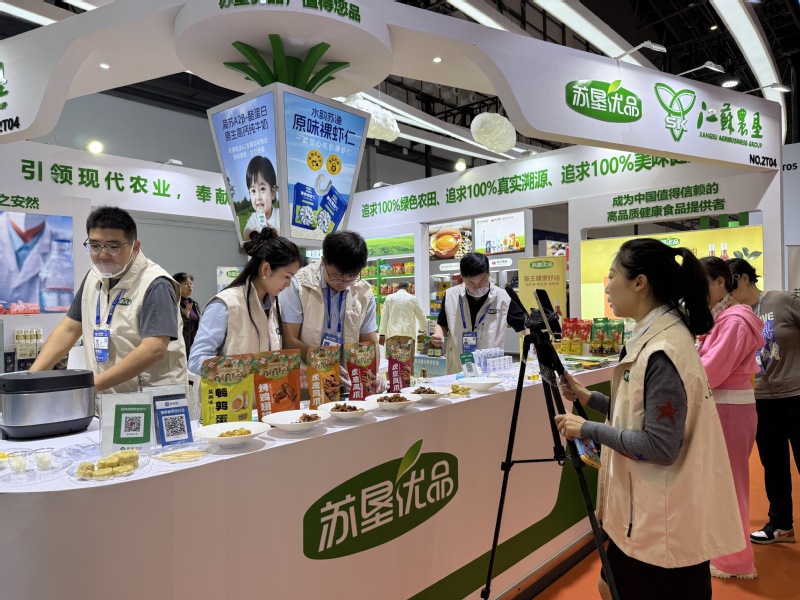 2025年12月4日,第二十八屆中國(海南)國際熱帶農(nóng)產(chǎn)品冬季交易會在海口國際會展中心盛大啟幕。江蘇農(nóng)墾食品供應鏈管理有限公司攜“蘇墾優(yōu)品”系列產(chǎn)品亮相展會。展區(qū)內(nèi)陳列著“蘇墾優(yōu)品”“蘇墾好物”等系列產(chǎn)品,吸引參觀者紛紛駐足品嘗,現(xiàn)場互動氛圍熱烈非凡。圖為工作人員進行現(xiàn)場直播。