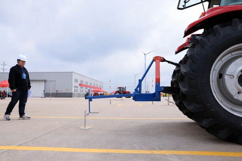 技能競賽由理論考試和操作技能兩部分組成,分別占總成績的30%和70%。16日晚進行了閉卷理論考試,內容涵蓋職業道德、法律法規、安全知識及農機新技術。17日上午,操作技能競賽在新洋分公司農機社會化服務應急保障中心實訓基地拉開帷幕。選手使用東方紅LX1604拖拉機及模擬開溝犁,完成維護檢查、倒車入庫、掛接農具、田間模擬作業、障礙路段行駛及定點停車等項目。其中套圈環節最扣人心弦,選手需在行進間將三個高低錯落的小掛圈依次套入開溝犁指定位置,精準操作贏得陣陣掌聲。