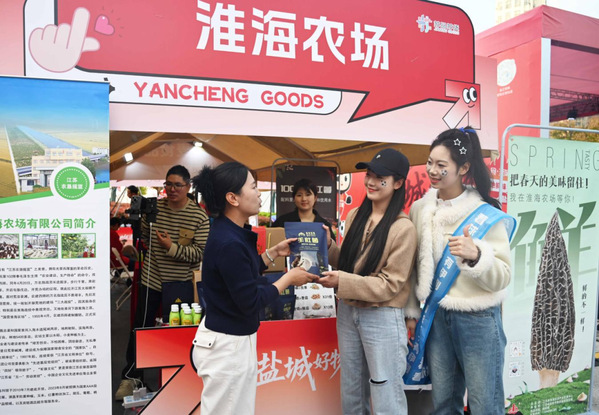 “蘇超”鹽城主場賽場外,淮海農場“墾一代”特色農產品亮相專屬展銷區,實現體育激情與農場產品的雙向賦能。