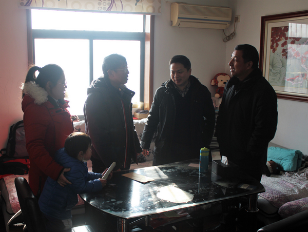 新春佳節將至,2月11日下午,江蘇省國資委監事會工作處領導張和峰、陸江海一行來到南京中山大廈,在中山大廈黨委書記盛?同志的陪同下,走訪慰問了部分困難職工,向他們送來黨和政府