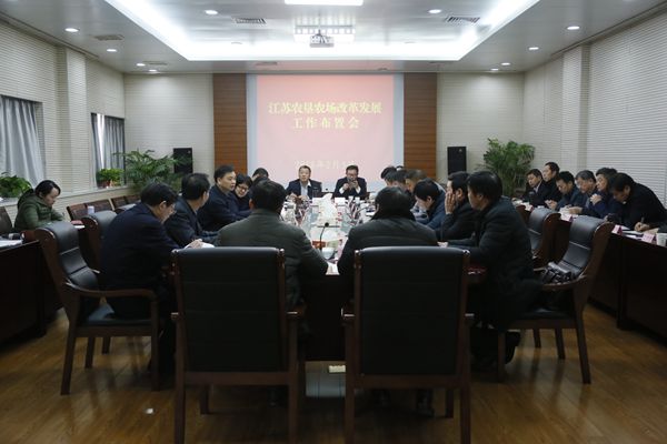 在2018年江蘇農墾工作會議剛剛結束之際,2月5日上午,集團公司在機關十二樓會議室召開農場改革發展工作布置會。集團公司副總經理姜建友主持會議并講話,總會計師劉克英作補充講話。集團公司總經濟師、戰略