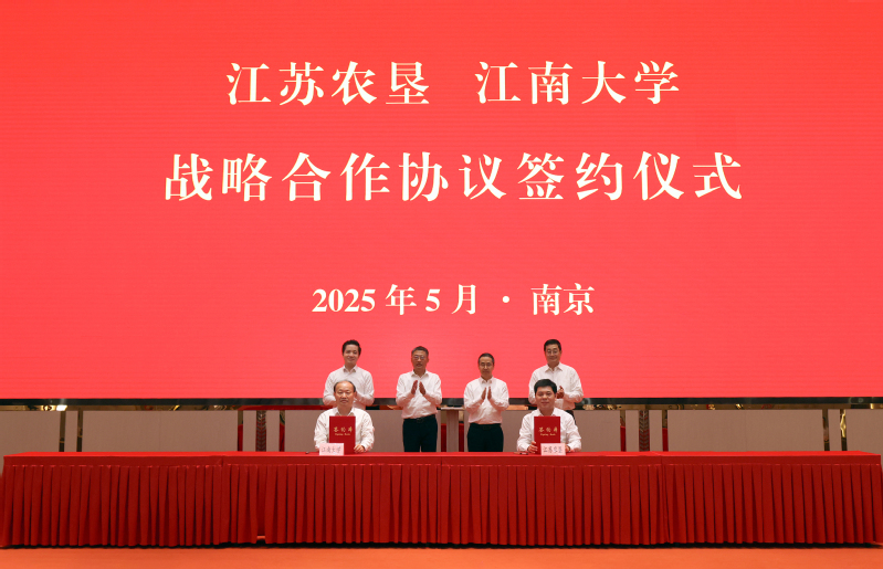 5月7日下午,省農墾集團與江南大學戰略合作協議簽約儀式在南京舉行。集團黨委書記、董事長吳本輝致辭,中國工程院院士、江南大學校長陳衛出席并講話。集團黨委副書記朱浩出席簽約儀式,黨委委員、副總經理王立新主持簽約儀式。江南大學黨委常委、副校長顧正彪,江南大學黨委常委、副校長、卓越工程師學院院長馬鑫出席簽約儀式。吳本輝在致辭中表示,江南大學作為我國高等教育領域的重要力量,在食品科學、生物工程、紡織科學與工程等多個學科領域成績斐然,享有極高的聲譽。江蘇農墾積極實施“一核引領、雙擎驅動”戰略,對內完善科技創新頂層設計,打造了“科創委+產研院+企業研發中心”的高效科創體系,對外與大院大所緊密攜手,共同攻克了發展中的技術難題。多年來,江蘇農墾與江南大學在現代農業、食品質量安全、智能制造、未來食品等領域開展緊密合作,取得了一系列豐碩成果,同時深度開展人才交流,彰顯了產學研合作的深厚根基和巨大潛力。江蘇農墾將以此次全面戰略合作為契機,開啟全方位、深層次合作,涵蓋食品科技、食品檢測、營養健康、人才培養多個重要領域,充分發揮雙方在農業、食品、科研等領域的優勢,共同探索農業與食品產業融合發展新模式。陳衛表示,江