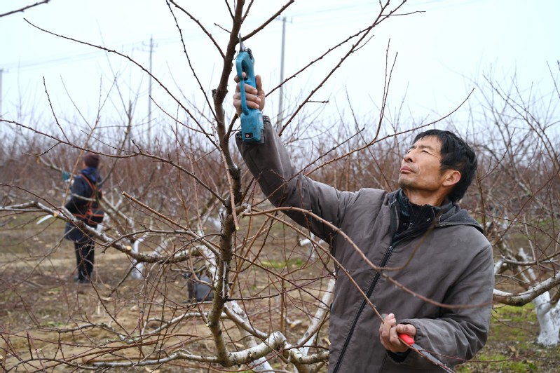 1月2日,淮海農(nóng)場公司資源管理中心邀請外地的4名果樹修剪領域的專家,來到上百畝的果園基地內開展果樹的冬剪,并對中心的部分員工進行實地修剪操作培訓工作,確保通過果樹的冬剪培養(yǎng)人才,同時也為明年果樹多掛果、掛好果打下堅實基礎。圖為修剪師傅在冬剪。