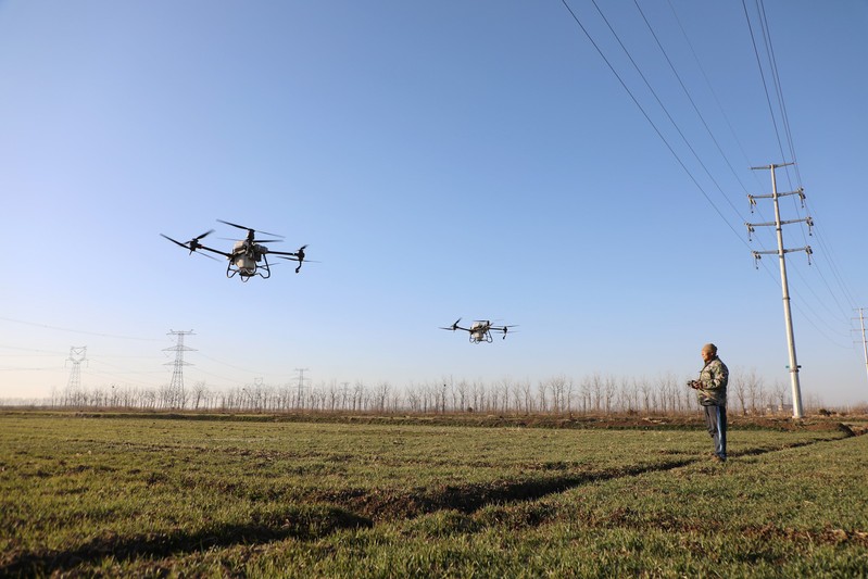 當前,冬小麥田間管理進入關鍵期,走進東洋生產(chǎn)區(qū)67大隊小麥田,遠遠望去,一行行一列列郁郁蔥蔥的麥苗隨風搖曳,麥田上空不時有噴灑肥料的無人機輕輕掠過,農(nóng)業(yè)大隊長蔡祥正在田間帶領技術員一起查看苗情,指導工人們使用無人機給麥苗進行追肥,助力冬小麥豐產(chǎn)豐收。